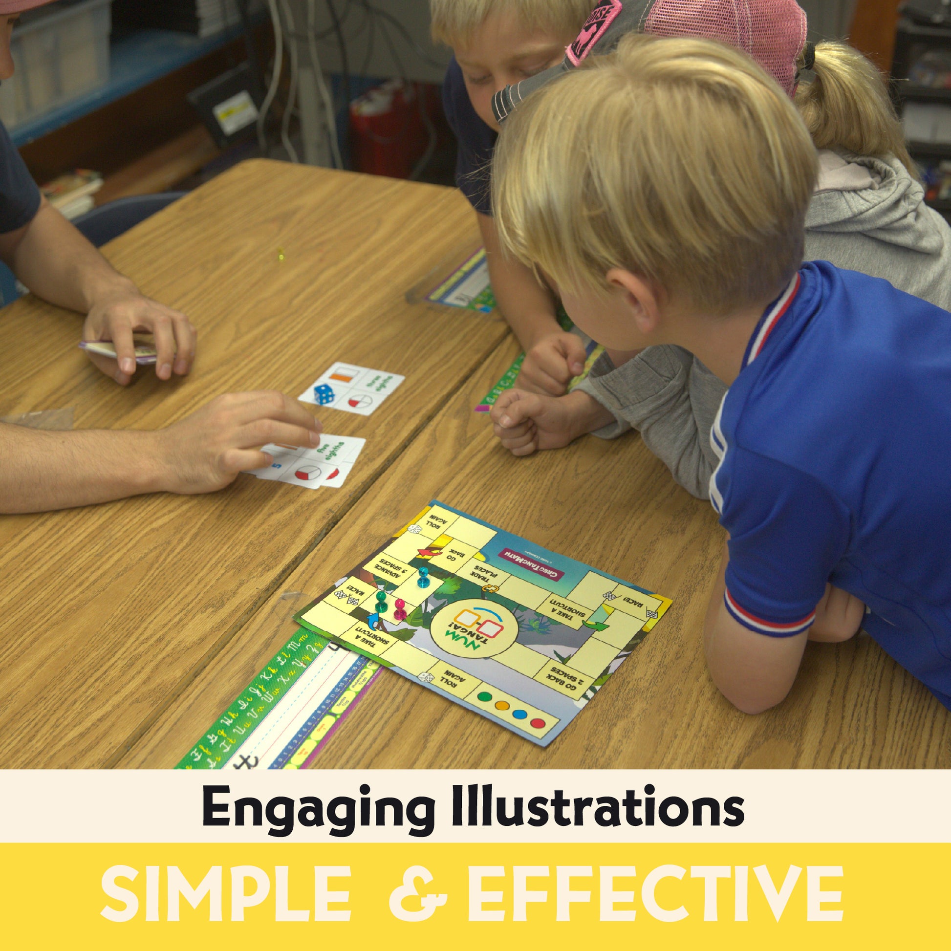 All of our games are carefully designed and tested to maximize learning and fun. We focus on number bonds (also called fact families) and use multiple representations to model numbers, deepen understanding, and encourage efficient thinking. Each station includes multiple ways to play, from easier to more challenging, so it is simple to adjust for all grade levels and abilities. The games are naturally differentiated, so younger and older students can play together while everyone stays engaged.